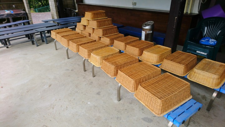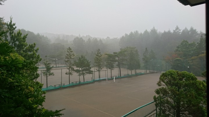 山中湖は台風14号の影響で朝からものすごい豪雨となりました。写真は朝7:40、雨で辺りが真っ白でした。朝3時から降り出してお昼までに、当館庭での計測で125mmの大雨。国土交通省の山中湖の雨量は68mmなので、2倍くらい降りました。これから台風14号が来るので、注意したいです。皆さんも気を付けてください。