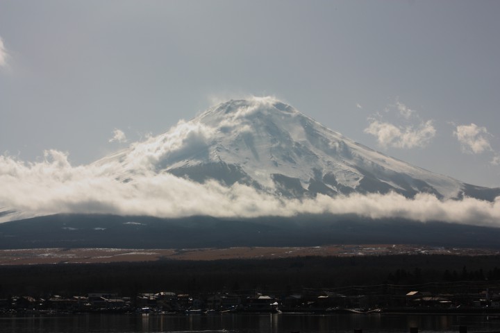 今日の最高気温は10℃、最低−5℃。最近は−15℃近くまで冷え込んでいましたので日中はとても暖かく感じました。もう3月だというのに厳しい冬ばかりでしたがやっと春らしい日になりました。昨日のPM11時から降り出した雪は朝方には雨に変わり、その後は晴れて気温が上昇したこともありお昼頃には雪はなくなりました。写真はPM2:20頃の富士山ですが、気温が高いせいかくっきりとした富士ではありませんでした。
