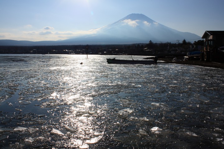 早朝の山中湖は随分氷が広がってきたと思っていたのですが(カメラを持っていなかったので撮影できませんでした)太陽が出ていたせいもあって、溶けてしまったり波で砕けてしまったり…全面結氷までは、まだまだ時間がかかりそうです。