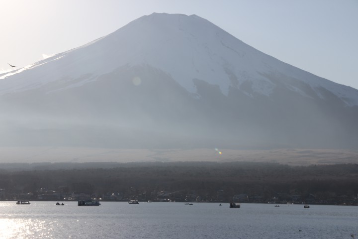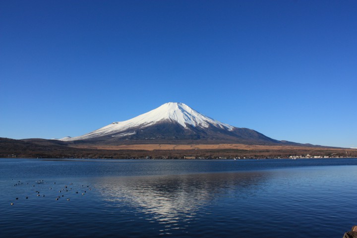 朝8時、長池地区親水公園から富士山を撮りました。早朝や夕方でなくても綺麗な富士山がいつでも山中湖からは写真が撮れます。時間によって様々な表情をもつ富士山を山中湖で楽しんで下さい。お勧めは早朝の紅富士です。