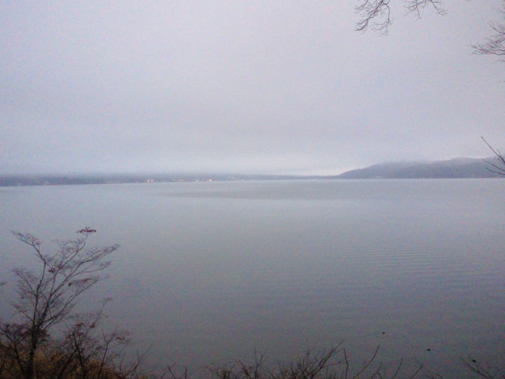 昨日の暖かさとは一変、寒い1日となりました…と思って気温をチェックしてみたら、今日の最低気温0.2℃。氷点下じゃなかったので、暖かかったんですね。雨ということもあり、山中湖はとても寒そうで、静かです。12/12/17