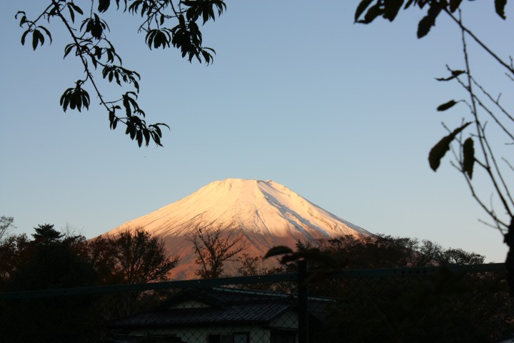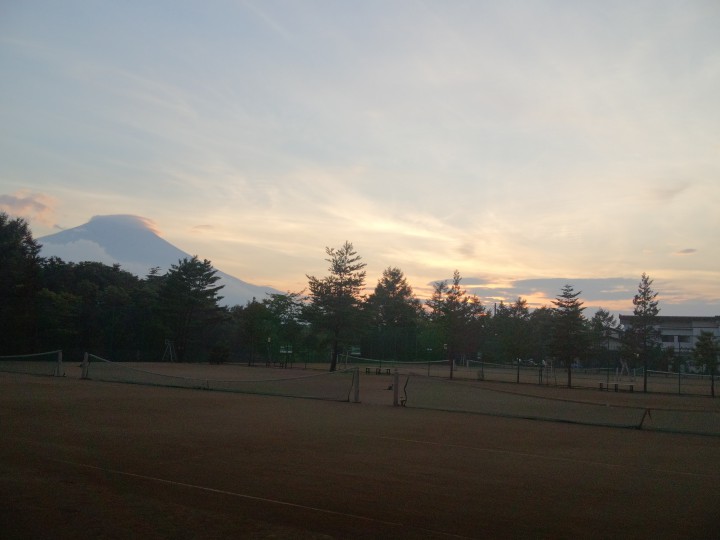 今朝6時頃の紅富士です。寒いだけあって(氷点下でした)とても綺麗な富士山が見られました。まさに早起きは三文の得ですね。日が昇るとぽかぽか陽気、風も穏やかだったので絶好のテニス日和でした。