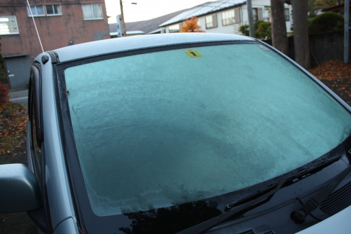 昨日に続いて霜が降りました。最低-3.5度、最高14度。朝6時、車のフロントガラスが凍ってました。