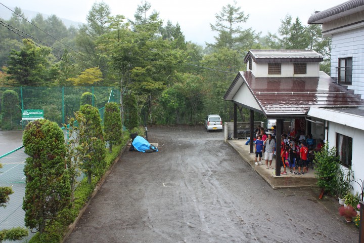 KTCの皆さん、合宿お疲れ様でした。あいにくの天気でテニスはほんの少ししかできませんでしたが、楽しい思い出はたくさん作れたでしょうか? そして、今日からお越しの硬式庭球連盟の皆さん、今年もご利用ありがとうございます。最近雨ばかりの山中湖、写真はコート脇で雨宿りしているところです。明日は晴れると良いですね。