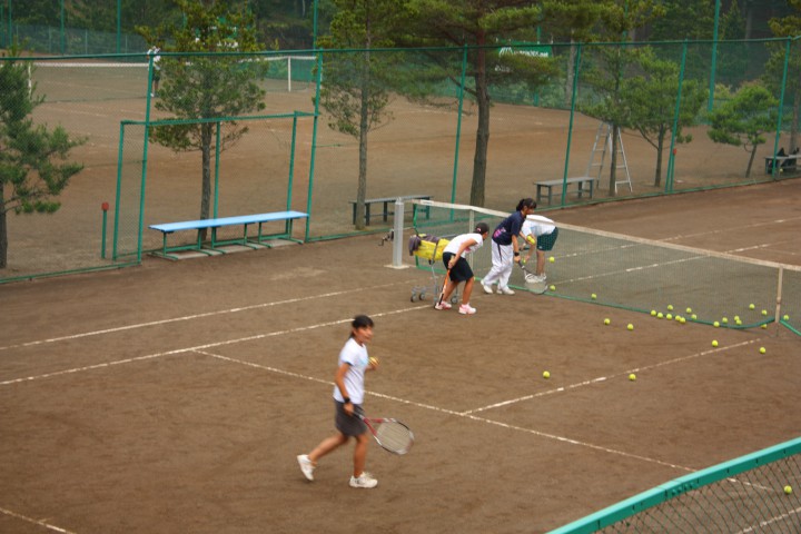 硬式テニス部・軟式テニス部の皆さん、今日で合宿2日目です。OBの方達も指導に加わって練習にも熱が入り、夏場の暑さに負けないくらい大きな声と若々しい動きに感心しました。