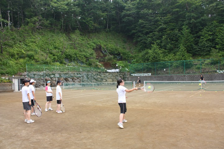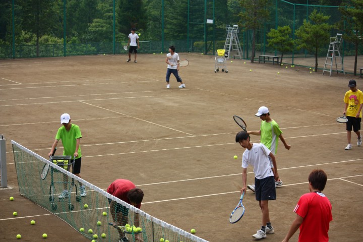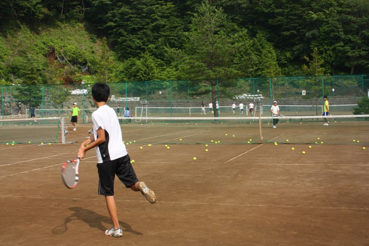 標高1000mの山中湖でのテニス合宿もいよいよ4日目、明日は最終日です。ケガの無いように集中して練習して下さい。引率の先生方も暑い中、よく生徒さん達を見ています。