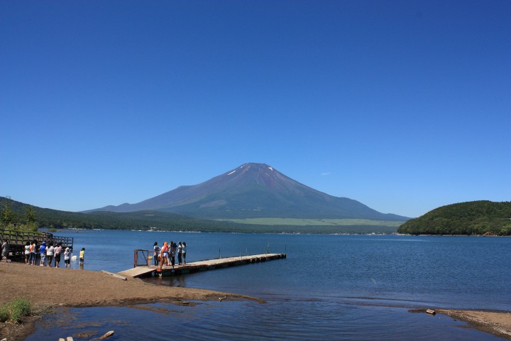 今日は朝から快晴の山中湖、富士山を望むとものすごい青い空です。写真は朝10時のものですが、朝5時には朝日が当たって富士山が真っ赤になる赤富士が見られました。最高気温は30℃でしたが、日陰は涼しく朝晩は寒いくらいです。最低気温は13℃、寒暖の差に注意しましょう。