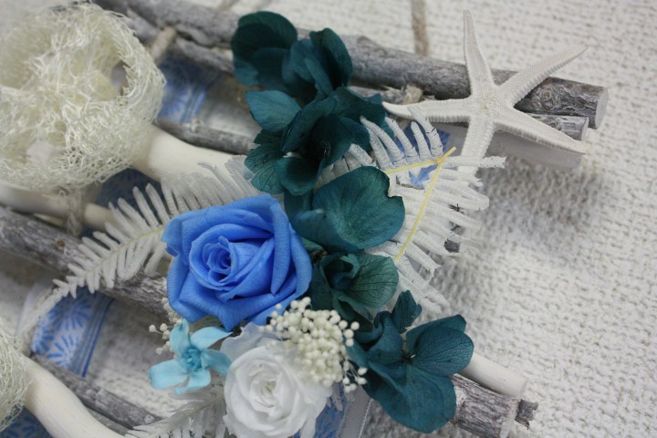 今日も暑いですね。山中湖はかろうじて30℃を下回り真夏日とはなりませんでしたが、暑いです。目で見て涼しくなっていただきたいと思い、夏らしい壁掛けのフラワーアレンジメントを作ってみました。夏限定で共立テニスロッヂに飾りたいと思います。