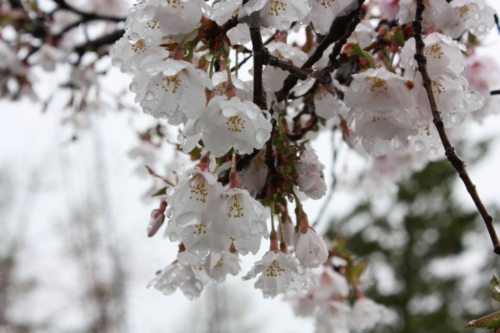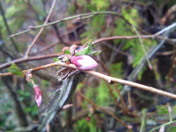 共立テニスロッヂの庭に咲いている桜です。5分咲きくらいです。今日の山中湖は朝からどんよりで、気がついたら昼には雨が降っていました。最高気温は15℃、最低は10℃、日が沈むと寒く感じるので、まだまだ上着は必要です。