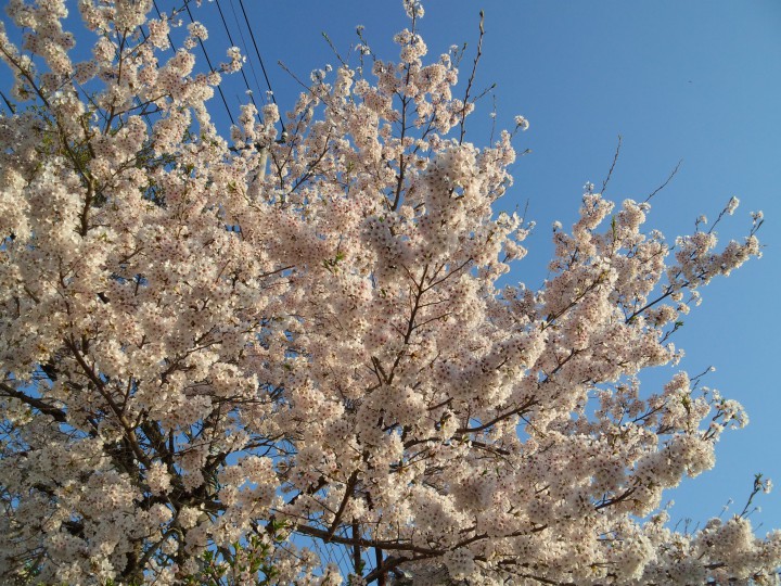今日の山中湖は最高気温23.7℃、庭の桜がいつの間にか咲いていました、2分咲き位です。湖畔沿いではそろそろ満開になりそうです、3〜7分咲き。富士吉田ではご覧の通り満開です。とても綺麗ですね。
