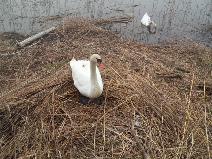 山中湖にはたくさんのコブハクチョウが住みついて、訪れる人の心を和ませてくれます。白鳥は立ち上がると結構な身長?で、泳いでいるイメージだと小さい感じがしますがかなり巨大な鳥です。写真は、コブハクチョウの巣です。卵は見えませんでしたが、5月中にはかわいい雛が生まれるかもしれませんね。山中湖に来たら白鳥を見に行きましょう。