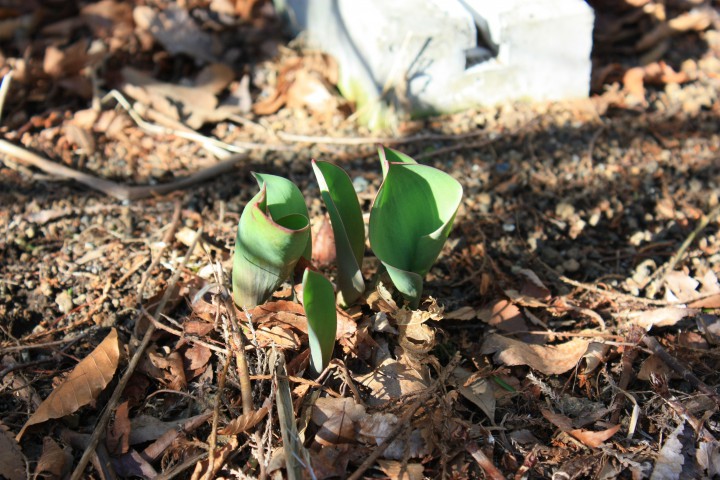 昨日の爆弾低気圧も過ぎ去って、今日はとってもいい天気です。(しかし依然「強風注意報」は継続中)強風によって倒れてしまった木もあれば、元気に育つ花の芽もあり、春の足音が聞こえてくるようです。写真は、庭で見つけたチューリップの芽です。何色の花を咲かせてくれるのでしょう?