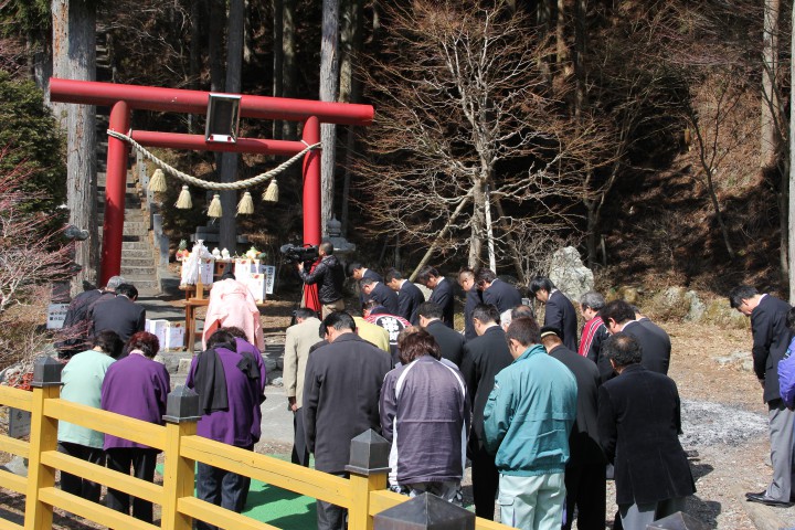 本日午後2時より、石割神社鳥居前にて『石割神社例大祭式典』が執り行われました。神社は石割山ハイキングコースを石割山に向かっていく途中にあり、この鳥居から30分ほどで着きます。