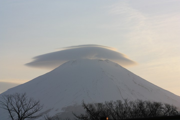 夕方、富士山に笠雲がかかりました。笠雲が現れると明日は雨になると言われています。天気予報も明日は雨の予報なので、きっと雨でしょうね(^_^)今日の山中湖は雲まじりの晴れ、気温-3〜13℃で過ごしやすい1日でした。