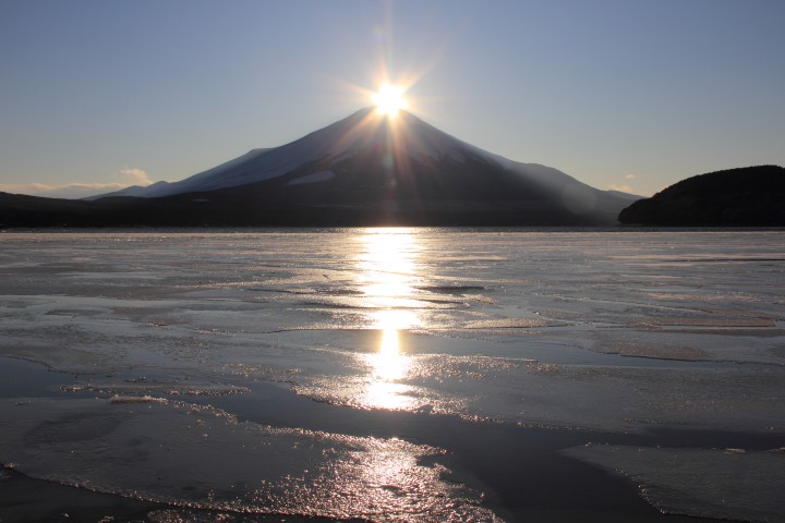 今日は残念ながら曇っていたため、最後のダイヤモンド富士は見ることが出来ませんでしたので、2月18日のものを載せました。湖水の流氷がいい感じです。