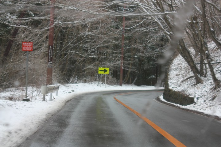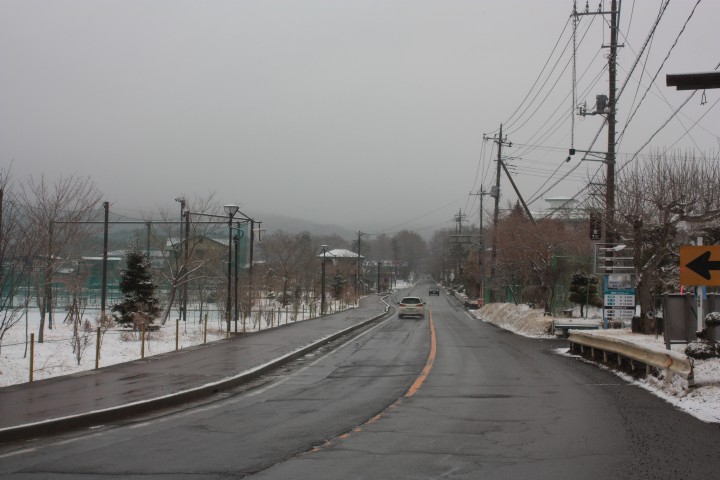 深夜に雪が降ったようで、早朝の道路の積雪は4cmほどでした。午前中は良い天気でしたので、道路は雪が溶けてぬれた状態となりました。午後になると雪が降り出しましたが積雪はありませんでした。日中の最高気温は3℃、最低は-8℃、夜は雪がぱらついています。