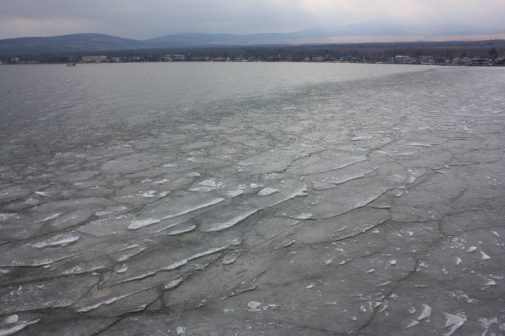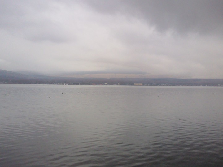 朝方は青空が見えていましたが、お昼時になると雲が多くなり富士山は見えなくなりました。予報では、深夜から雪→雨になるそうです。写真は山中湖の西側、山中地区から富士山方向に望んだものです。氷がまるで鱗のようでした。今日の最低気温-5℃、最高は5℃、かなり暖かく感じた1日でした。