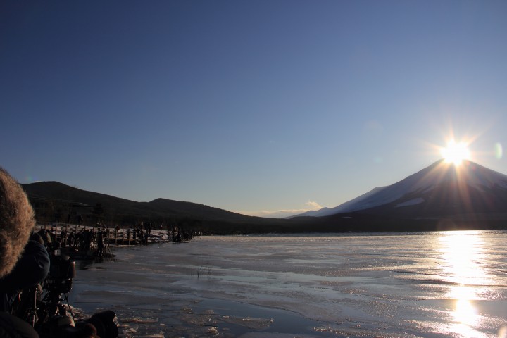 今日は一日中氷点下の真冬日となり寒い1日でしたが、良く晴れて久しぶりにダイヤモンド富士を見ることが出来ました。山中湖『アイスキャンドルフェスティバル』の開催場所「きらら」付近ではPM4時半からダイヤモンド富士、PM6時からは冬花火が上がり、すごい賑わいでした。冬の花火はなかなか見ることが出来ないので感動しますね。今日の最低気温は-13℃、最高が-2℃、まだまだ寒い山中湖です。