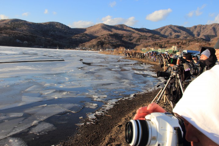 今日、ダイヤモンド富士を撮りに来た方はラッキーでした。気温も暖かく、富士山頂には雲一つ無い絶好の機会でした。平野地区からはちょっとずれていたので、旭ヶ丘地区からの撮影がちょうど良いかもしれません。12/02/20