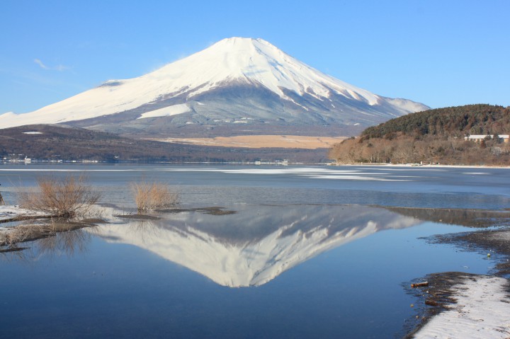 今朝の山中湖は最低気温-11度、まだまだ寒いですが少しずつ厳しい寒さが和らいできました。日中も7度まで上がりました。道路状態は乾いています。明日の朝方は-5度の予報です。写真は平野ちびっ子広場前の逆さ富士です。山中湖の氷もだいぶ溶けてきました。湖の東側の平野ワンドはかなりの範囲で結氷していますが、立ち入り禁止です。