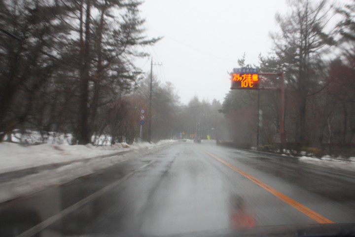 昨日の夜から強風を伴った大雨が、朝まで降りました。おかげで積もっていた雪はほとんど溶けて、道路も脇に除雪した雪が残る程度です。山中湖の氷上立ち入りは氷がだいぶ溶けてしまったため、明日は禁止となりました。今シーズンの穴釣りは終了かもしれません。朝8時に気温は10℃、4日前の同時刻は-16℃でしたので気温差はなんと26℃、26℃も気温が上昇しました。今日の最高気温は12℃、夜は-7℃まで冷え込む予定ですので、車は凍結スリップ注意です。