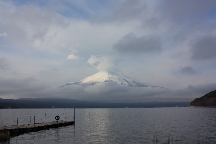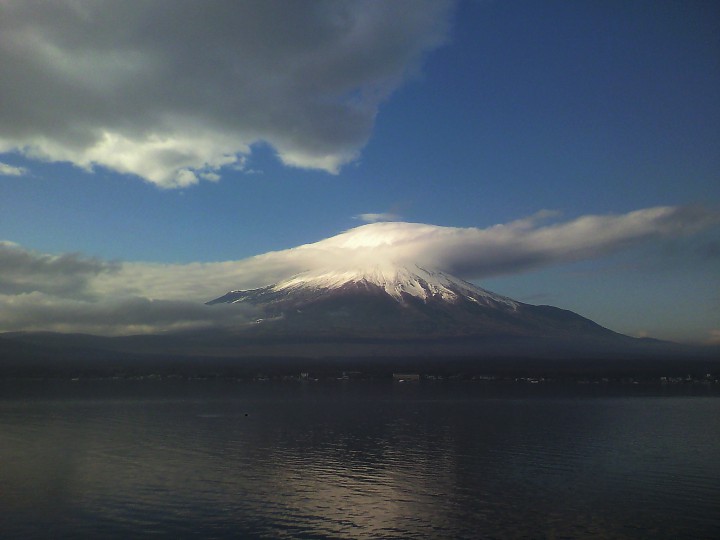 朝9時の富士山です。少し崩れていますが、大きな笠雲が富士山を覆っていました。笠雲が出た後に天気が崩れる確率は72%。でも明日の天気予報は晴れです。今日の最低気温-4℃、最高8℃。写真撮影時、山中湖の北西側では多くの白鳥たちが白鳥おじさんのえさ出しを待っていました、かわいいです。