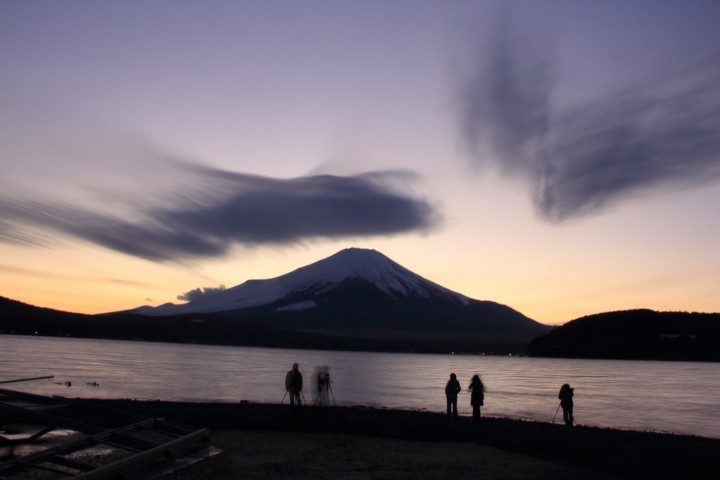 写真は16:50、日没後ですが写真家たちが富士山を撮っています。