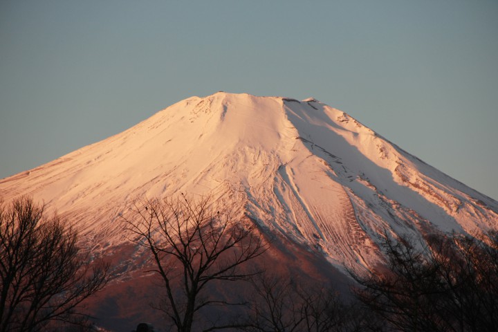 朝7時の富士山です。見事な「紅富士」です。(赤富士は、晩夏から初秋にかけて早朝に富士山が朝日に染まって起こる現象。葛飾北斎の絵を思い浮かべて下さい)冬の風物詩「紅富士」とっても綺麗でした。