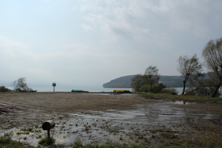 日本最大級の草トーナメント「山中湖チャレンジカップ」がいよいよ今週末に開催されます。出場予定の皆さんは天気が気になるところですね。今のところ予報では15日(土)は曇り時々雨、16日(日)は曇り時々晴れとなっています。なんとか日中さえ雨が降らないことを願います。山中湖はもうベンチコート必須です!写真はちびっ子広場、10/7と比べてかなり水が引いてきました。