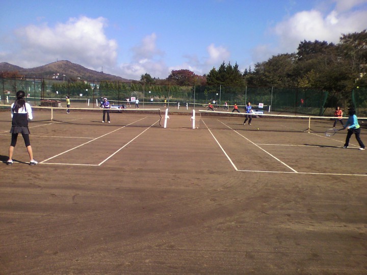 早朝まで雨でしたが次第に晴れ間が見え、今日は絶好のテニス日和となりました。各宿急ピッチでコート整備を行い、なんとか午前中から試合が出来き、夕方には雲一つ無い美しい富士山をバックに閉会式を迎えることが出来ました。今年の大会は雨天のため、満足な試合が出来なかったと思いますが、来年もよろしくお願いいたします。11/10/16