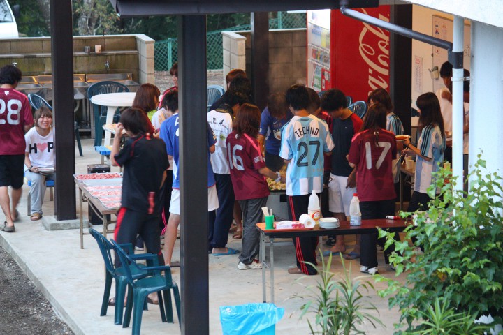 今夜の夕食は、みんなで「バーベキュー」でした。そろそろ日が沈むと急に冷え込んでくるので、夜のバーベキューや花火の際は長袖が必須です!明日は練習風景を撮影します。お楽しみに。