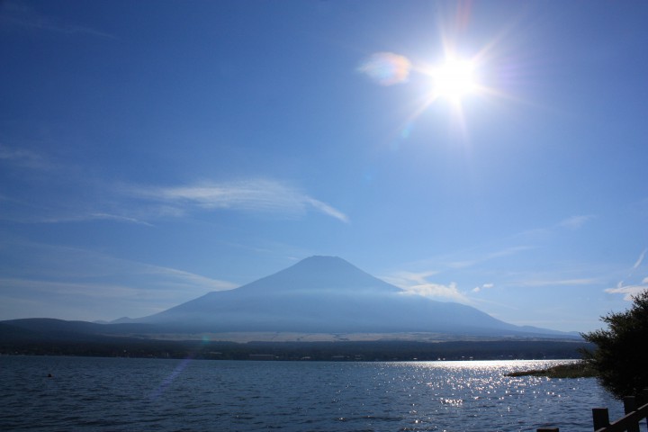 朝6時14℃とヒンヤリ肌寒くて霧がかかっていた山中湖ですが、霧の上空は真っ青な空、日中は26℃まで気温が上がり、日差しが強い1日でした。