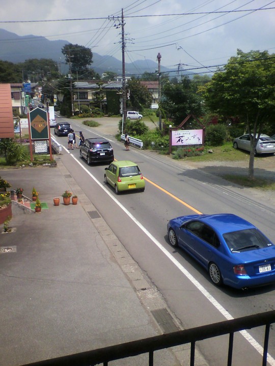 今日は国道413号線がかなり渋滞していました。写真は旭ヶ丘から平野方面に向かう車の列です。本日、中央高速バスにて新宿から来られたお客さんによると、新宿→平野までで3時間遅れ、予定では所要時間約2時間30分のところ5時間30分、平野10時到着が13時到着となったそうです。今日はお盆帰省ラッシュのピーク日で渋滞したようです、本当にお疲れ様でした。仲間達と思いっきりテニスを楽しんで下さいね。11/08/13