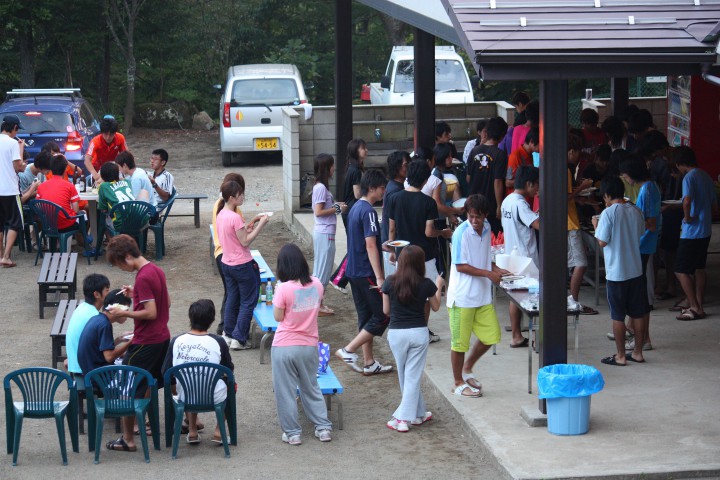 OTCの皆さんは毎日大きなかけ声で、元気に練習しています。合宿も今日で3日目、夕食はバーベキューです。そして、このバーベキューの後はみんなで花火を行いました。一生懸命テニスをして、楽しい思い出をたくさん作って下さい。11/08/14