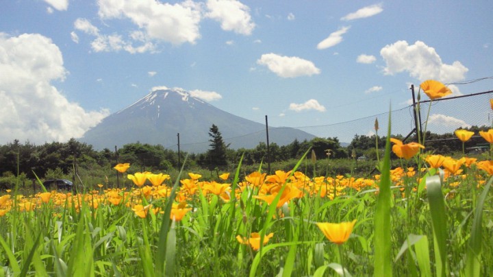 花の都公園の菜の花と富士山の写真を撮ろうと思っていたのですが、今日花の都公園の前を通ってみたら…菜の花の黄色い絨毯がなかったんです。(すっかり見頃を逃してしまいました)その替わりに、ハナビシソウ(カリフォルニアポピー)が満開でした。見ているだけで元気になりそうなオレンジ色です。11/07/04