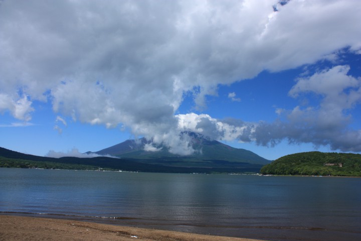 暑い日が続いています。富士山が山開きし、約2ヶ月間の登山シーズンが始まりました。夜になると、登山道に沿って光の道が見えるんですよ。ということは、登山している人も下界(?)の様子が見えたりするんでしょうか?こんなに近くに住んでいるのに、富士登山は未経験。いつかは登りたいとは思っているんですが…。写真は朝9時の山中湖、富士山のお腹あたりから雲がこちらに向かっているようなおもしろい雲でした。