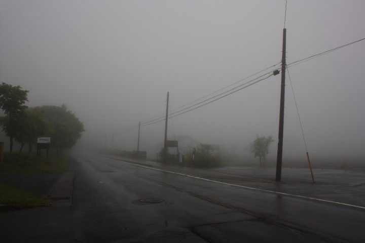 朝9時、国道413号線の共立テニスロッヂ入り口から富士山に向けて写真を撮りました。晴れていれば2/15の写真のように富士山が見えるのですが、すごい濃霧で辺りは薄暗く、車はライトを点灯していました。山中湖は一日中小雨、肌寒い1日でした。明日からは天気が回復する予報ですので、週末お越しになるお客様は富士山を見ながらテニスができそうです(夜はまだ寒いのでパーカーなどお持ちになった方がよいと思います)。