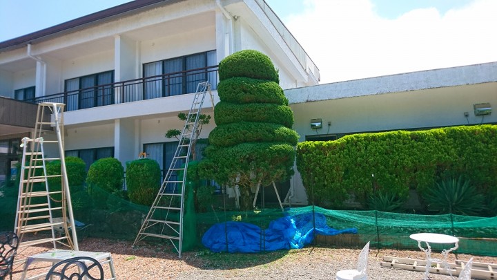今日は庭の剪定です。防獣ネットを外しながらの作業ですので、時間がかかります。防獣ネットは鹿に食べられないようにセットしています。大きな木の下側は鹿によって食べられてしまいましたので、頑張って生えてきてほしいです。