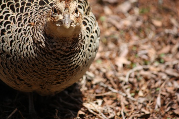 共立テニスロッヂの周りでは、野生動物をたくさん見ることが出来ます。今回はキジです。桃太郎のお話に出てくるキジですが、これは雌なので地味ですね。キジは飛ぶのが苦手らしく、よく林の中を走っている姿を見かけます。寒い時期は、シカ、キツネ、タヌキなども出てきます。人を見ると逃げていきますので、なかなか写真を撮るのは難しいですが、たまにロッヂの庭先を走っていたりて…自然豊かな場所なんです。