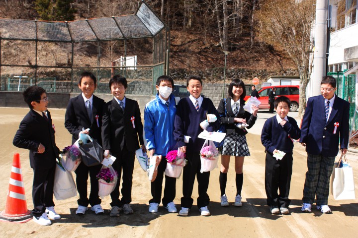 本日、小学校で息子の卒業式が無事行われました。かつてない大きな地震で日本中が大変な中、この卒業生たちのうれしそうな笑顔を見ていると、先々の不安も吹っ飛んでいくような気さえします。※3月11日の東北関東大震災の影響により、山中湖でも計画停電が実施されていますが、この平野地区は対象外のようです(節電にご協力を)。