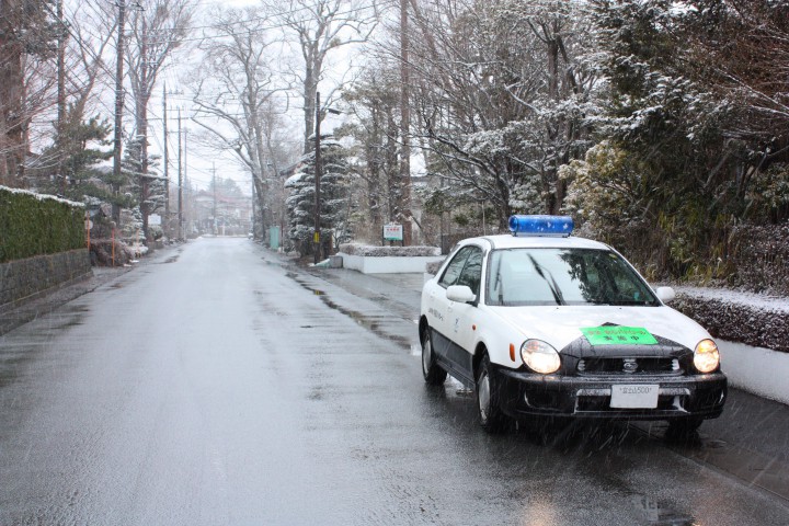 山中湖では学校と地域住民が協力して、子供たちの安全に努めています。元気で集団登下校する子供たちを見ることは、私たち大人の日課となっています。そして時間になると青い回転灯のパトロールカー(通称青パト)がパトロールします。そんな青パトは子供たちの人気者です。