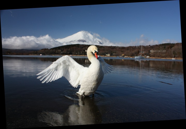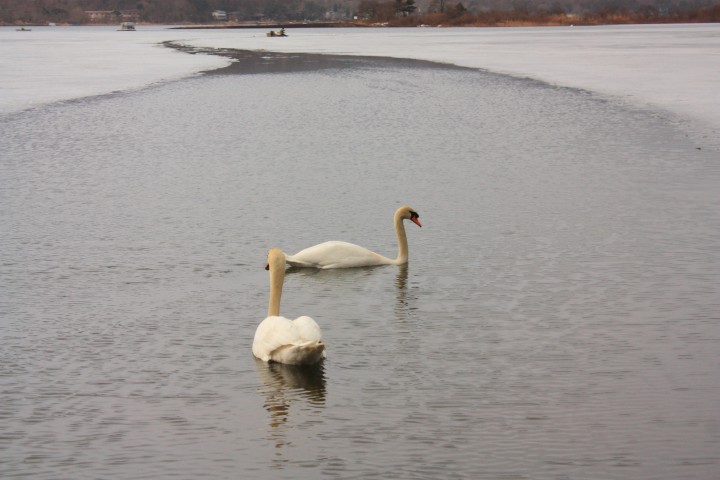 氷の割れ目から白鳥 ☆山中湖平野情報☆