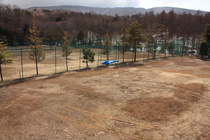 真冬みたいな景色ですが、今日の共立テニスロッヂの風景です。幸い夕方には、天気になりきれいな夕焼けが見られました…が、今夜は寒いです。夜7時に庭の水たまりが凍ってました!予報では明日朝6時-10℃、凍結注意です。