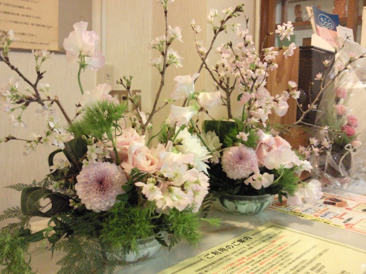 3月3日ひな祭り。共立テニスロッヂにも、一足早く春の訪れです。桜が咲いているのですが、今日も外は雪…積雪注意報まで出る始末。(夜10時ごろ解除されました)3月になってこんなに雪が降るなんて、珍しい!気温-7〜1℃。