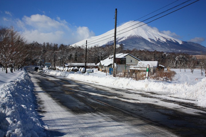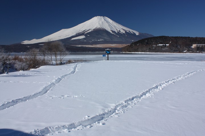 昨日午後から降り続けた雪がやみ、辺り一面銀世界。共立テニスロッヂで積雪33cm、長靴が埋まりました。二日前に降った雪がまだ残っているため、テニスコートは総積雪量45cm。国道は丁寧に除雪されていますが、スタッドレス・チェーンは必要です。11時現在晴れ、ダイヤモンド富士(平野湖畔16:30)が楽しみです。写真は9:30、共立ロッヂ入り口の国道413号。気温3〜-7℃。?山中湖:氷上に積雪有り、全面立入禁止?道路:積雪あり、凍結注意。