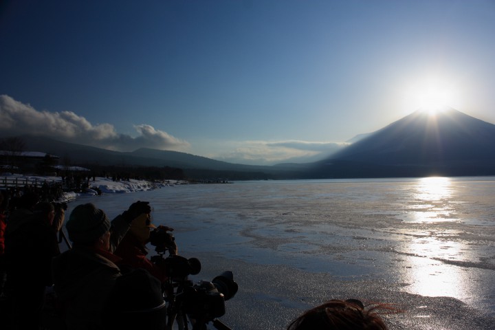 PM4:30、ダイヤモンド富士を見に行きました。場所は平野「きらら」脇、たくさんの人たちが湖畔沿いから撮影していました。肝心の富士山は少しもやがかかっていましたが、きれいでいた。明日は天候が心配です、富士山が見られるといいですね。
