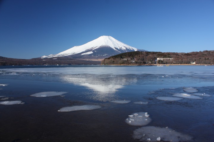 ?山中湖:平野地区は結氷、氷上全面立入禁止