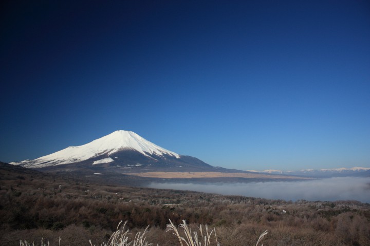 12時現在、富士山に笠雲がかかっていました。天気予報通り、天気は下り坂のようです。富士山にかかる雲の様子で、天気予報ができるんですよ。なんでも、笠雲の出た当日または翌日に、雨の降る確率は72%らしいです。気温-3〜7℃。