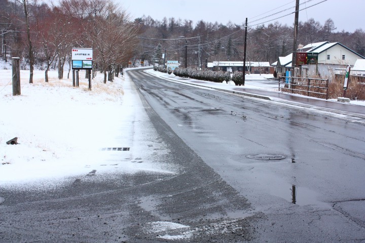 ?道路:雪が溶けて濡れていますが、今後は積雪&凍結注意。