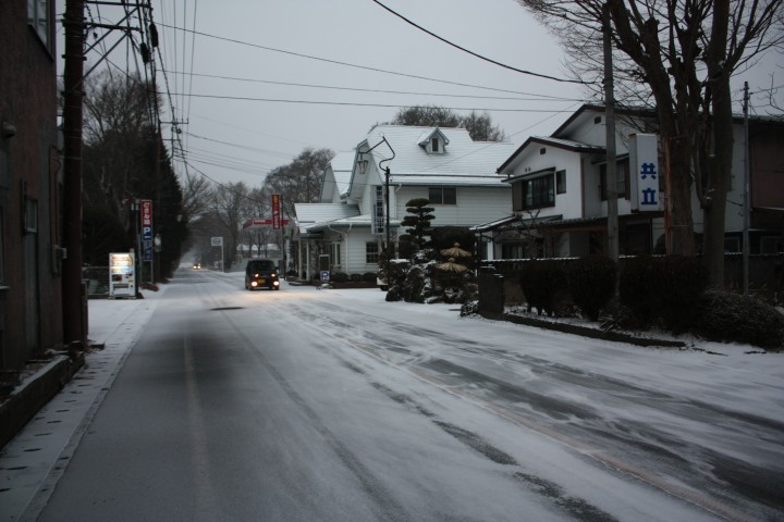 今シーズンは雪らしい雪は降っていなかったので、除雪作業は今回の雪が初めてです。国道はほぼ雪を雪をかいてありますが、日陰や夜、朝は凍結しています。国道以外の道(県道や村道)はまだ雪が残っていてわだち状になっている道路もありますので、スタッドレスやチェーンでも油断はできません、注意です!写真は、夜10時。国道は乾いていますが、アスファルトが凍っている所もあります。気温-7℃